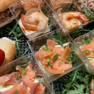 Tarte cu crema de branza si somon marinat