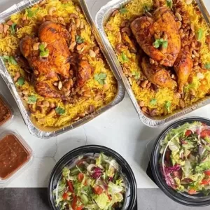 Cantitate: 1.5kg Orez, 1.5~ 2kg Pui, 0.5kg Salata, 1L AyranPentru acest platou, comanda se face cu cel putin o zi înainte.