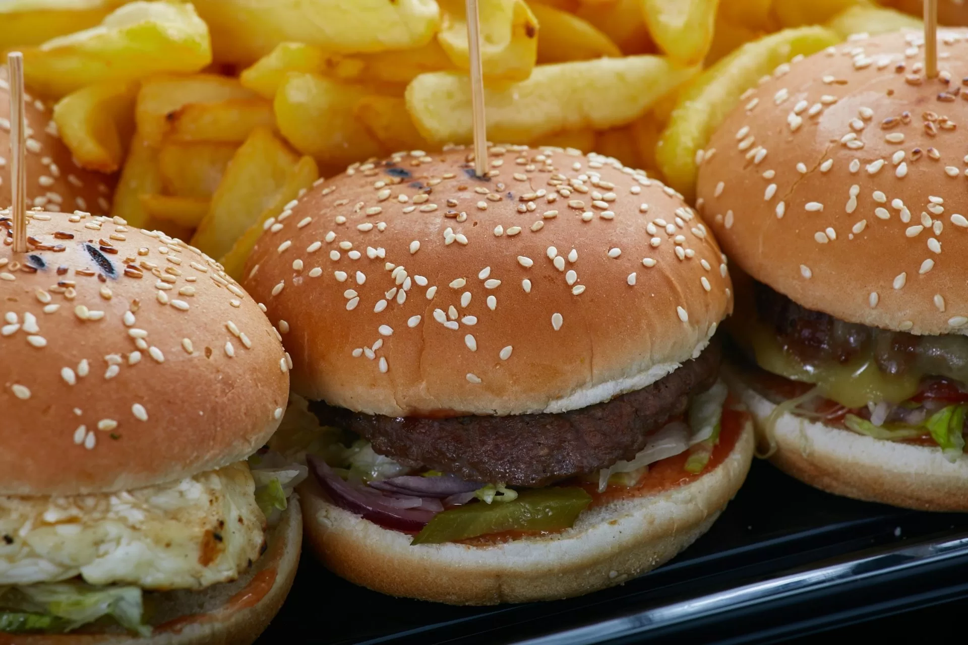 – Classic burgeri: carne de vita, salata verde, rosii, castraveţi muraţi, sos de burger.