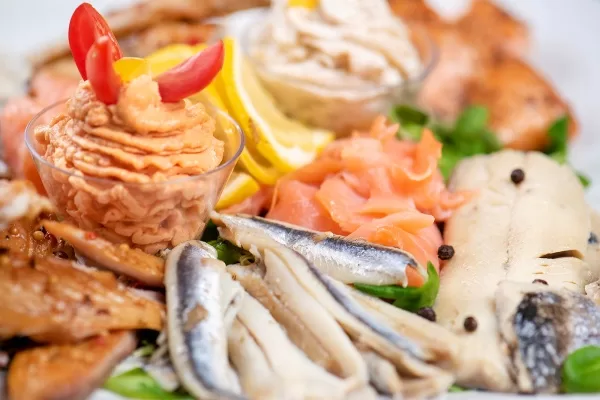 Bucurați-vă de un platou de pește marinat delicios de la Bistro Dorobanți.